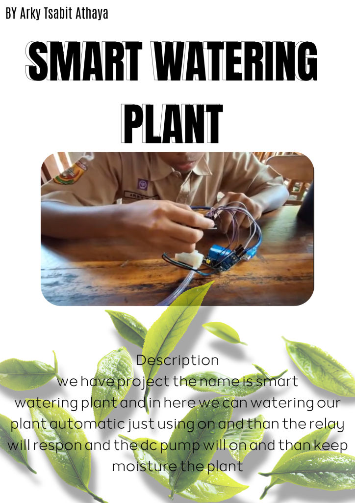 So this is one of the fastest completed projects because we only need to wire the cables and install the cables to the io bit after that when the relay is turned on it will connect to the dc pump and will emit a lot of water to moisten the soil and plants. How the watering working so if you already wired in the cabel you need to turn on the io bit and than after that the relay will respons and the soil mosture will calculate the moisture and if the plant dry the dc pump will on and will emit the water. And in one team we have 4 people namely me tsaqif khalifa and fadhil and we have the demo video that you can watch on youtube and than we have like many of components we have jumper cables relay dc pump microbit and io bit