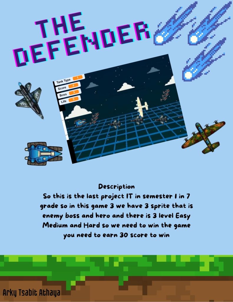 So this is the last project in semester 1, namely the IT Game The Defender project before taking the exam and in this game I am very, very confused because there are a lot of codes, even if there are bugs or something else we have to be careful in checking it because if we are not careful we will experience bugs continuously in the game and it is very difficult and in this game we have 3 sprites there are hero enemies and bosses and in this game we have 3 levels namely easy medium and hard